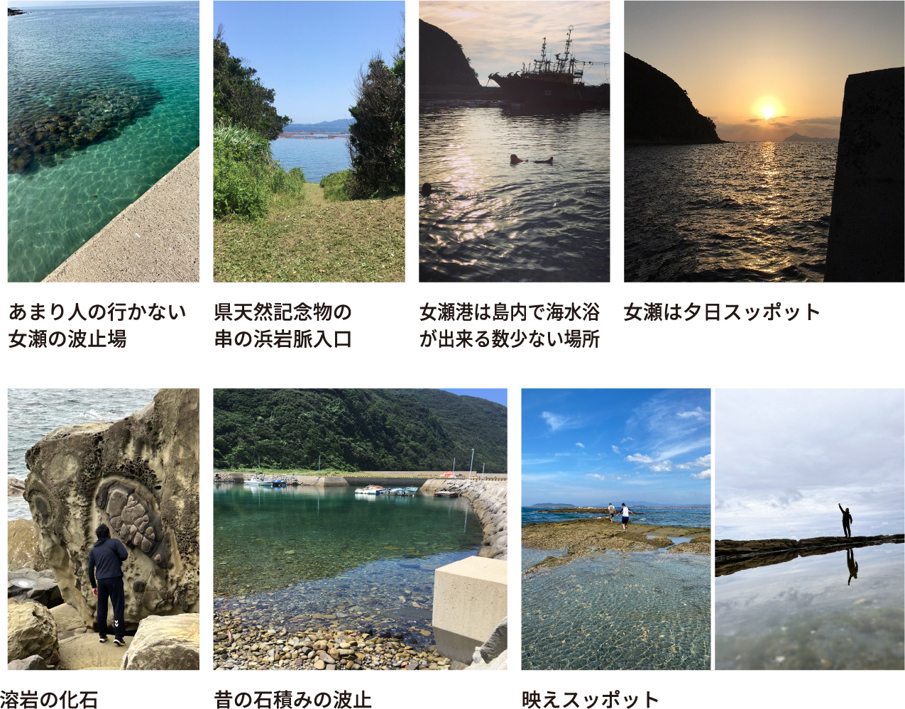 ここには、約800万年前に地下の溶岩が岩盤の裂け目に入り、冷え固まったものが見られます。全長は300m以上に及び、長崎県では最大の規模で潮が引いた時に、当時の地殻変動の痕跡を目の当たりにできます。